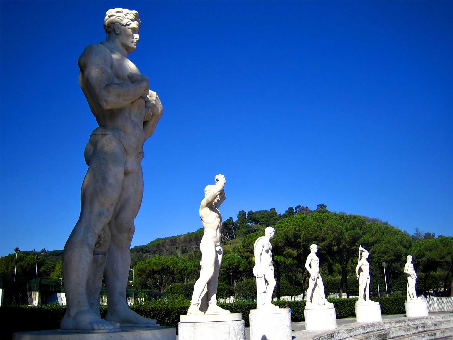 Статуи спортсменов из каррарского мрамора на Мраморном стадионе в Риме («Стадио дей Марми»)Фото: Wikimedia Commons