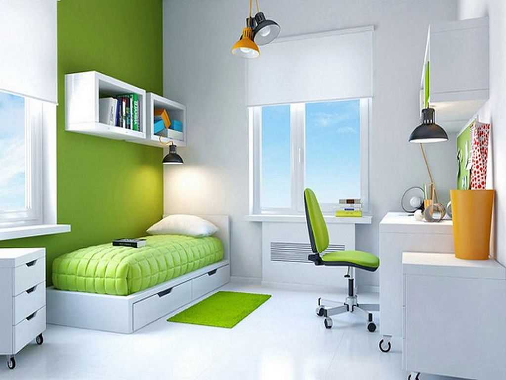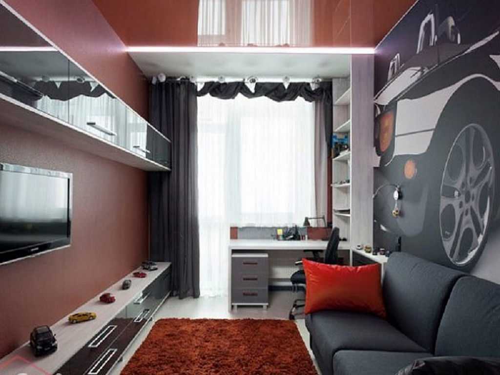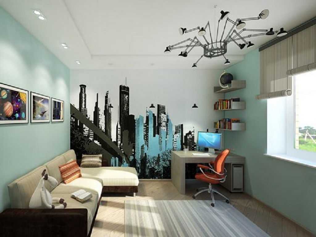 В детской, как правило, расцветка более яркая, чем в других комнатах. Урбанистичность колорита разбивается яркими брызгами. Изображения техники и модельки машин или самолетов гармонично украсят комнату. Одну из стен можно украсить сюрреалистической живописью, панно, графической росписью.