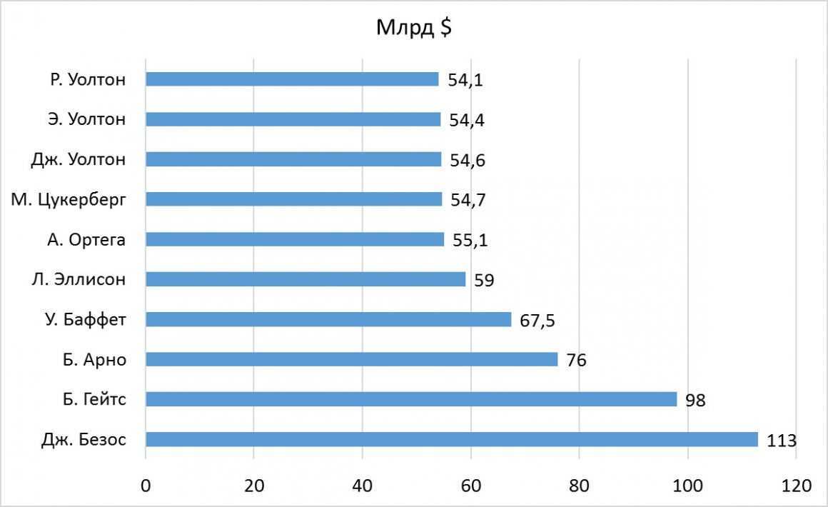 Основываясь на такой логике можно смело сказать, что только американец Дж. Безос является состоятельным субъектом, тогда как все остальные – банальная нищета. Стоимость активов владельца «Amazon» оценивается в 113 млрд долларов США .