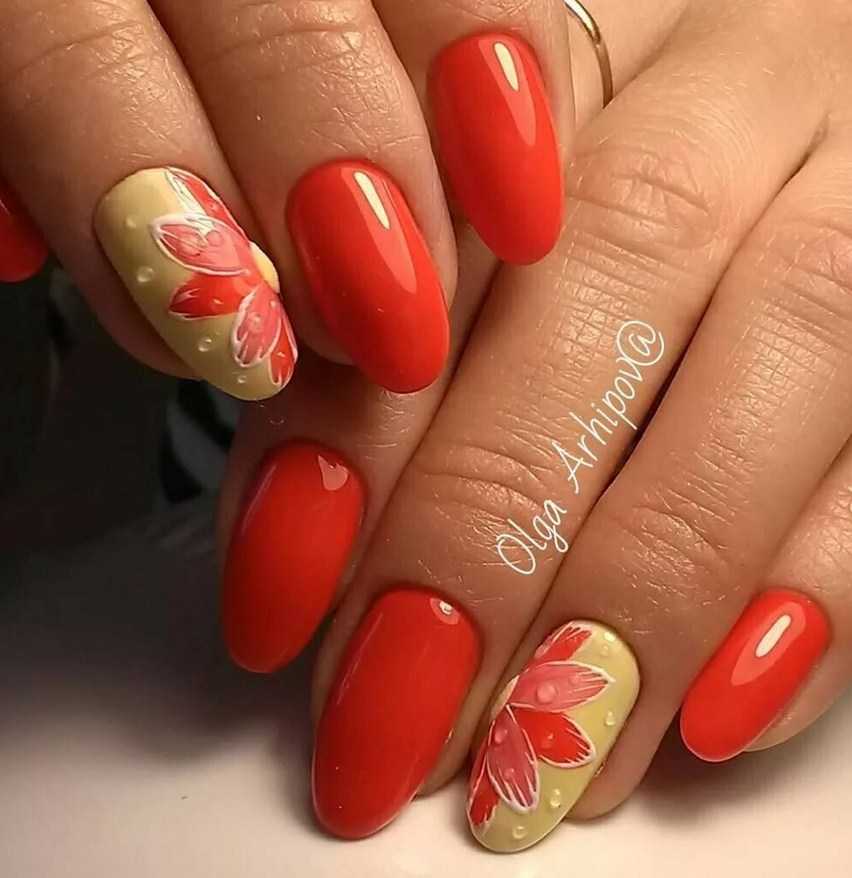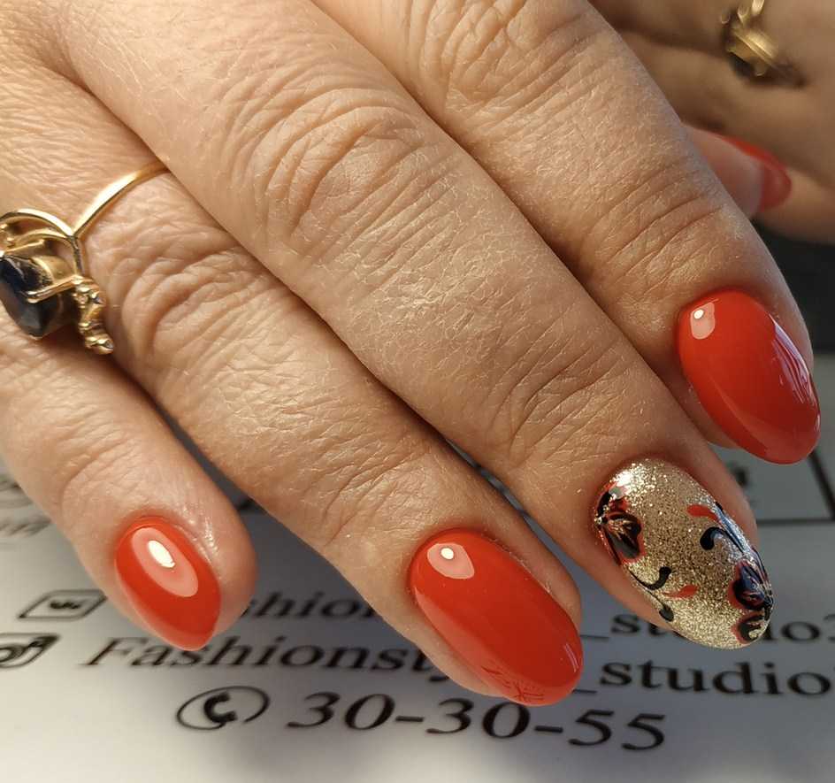 Художественная роспись, объемная лепка — излюбленные техники многих мастеров. Они позволяют им раскрыть свой талант, реализовать самые смелые фантазии. Красно-черные цвета — акцентные, сочные, поэтому маникюр смотрится колоритно, красочно.