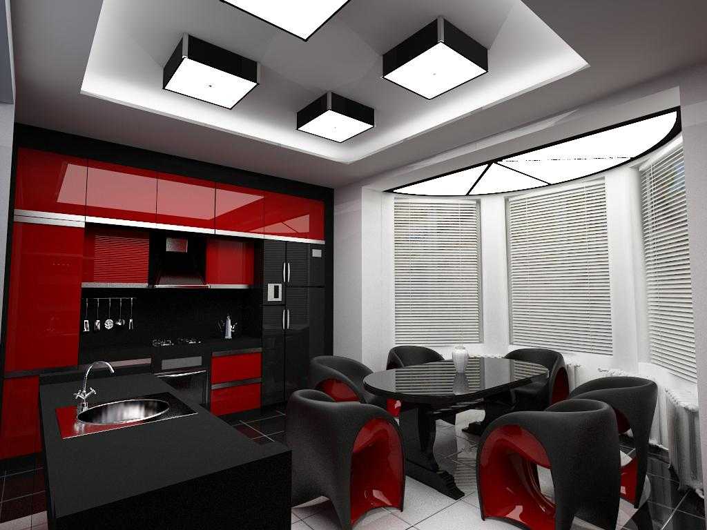 Интерьерные направления для реализации проекта красной-чёрной кухни