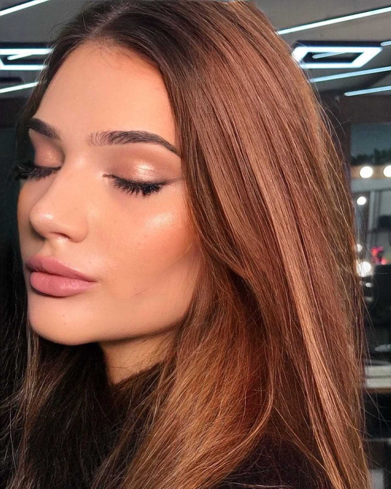- Легкий контуринг под скулами для создания естественной тени.