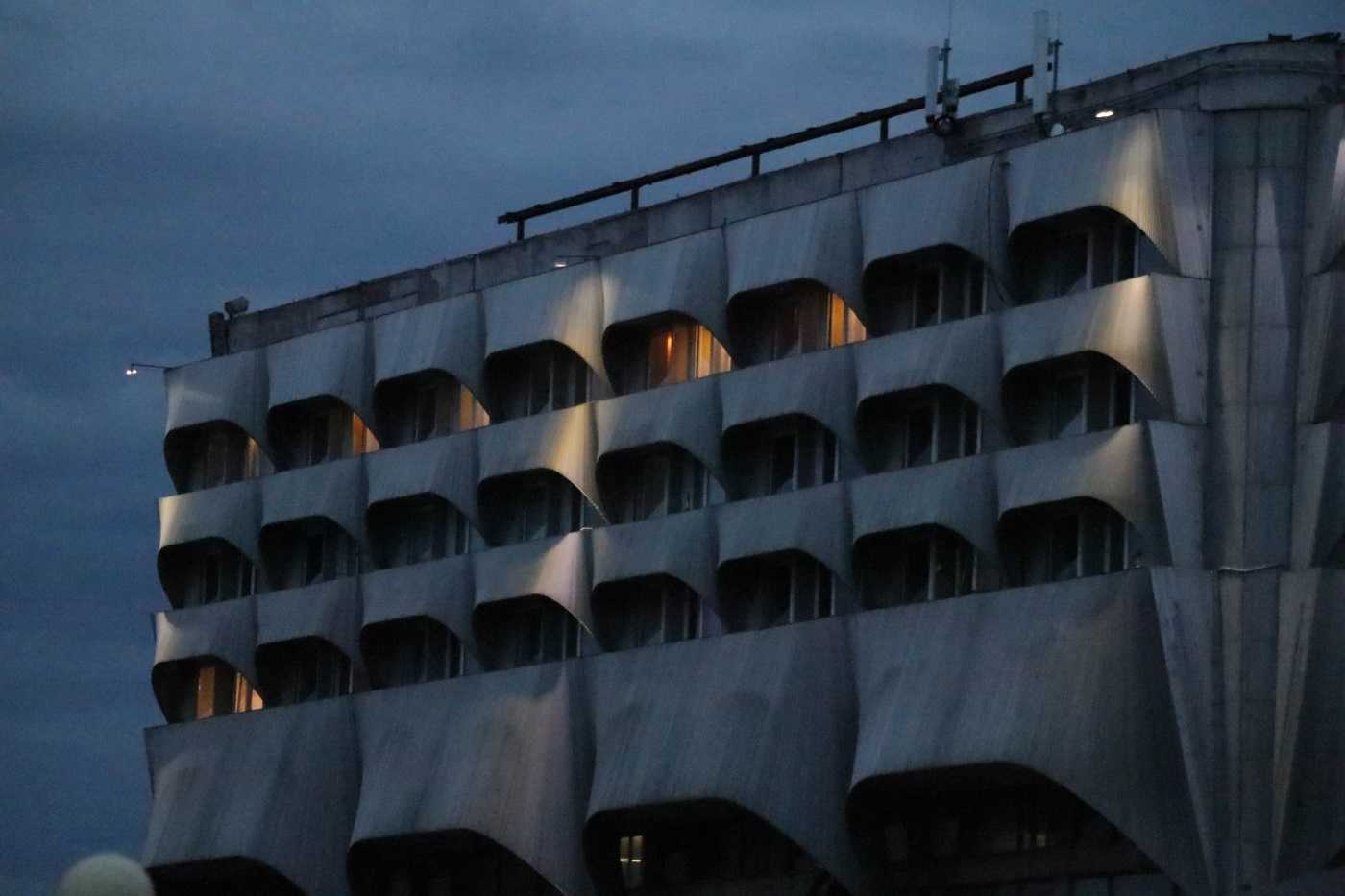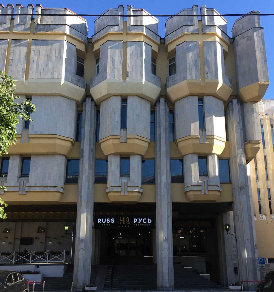 Гостиница была перестроена из жилого конструктивистского дома в стиле брутализм или даже необрутализм. Грубые и необычные формы фасада удивляют смелостью, но композиционно смотрятся довольно органично.