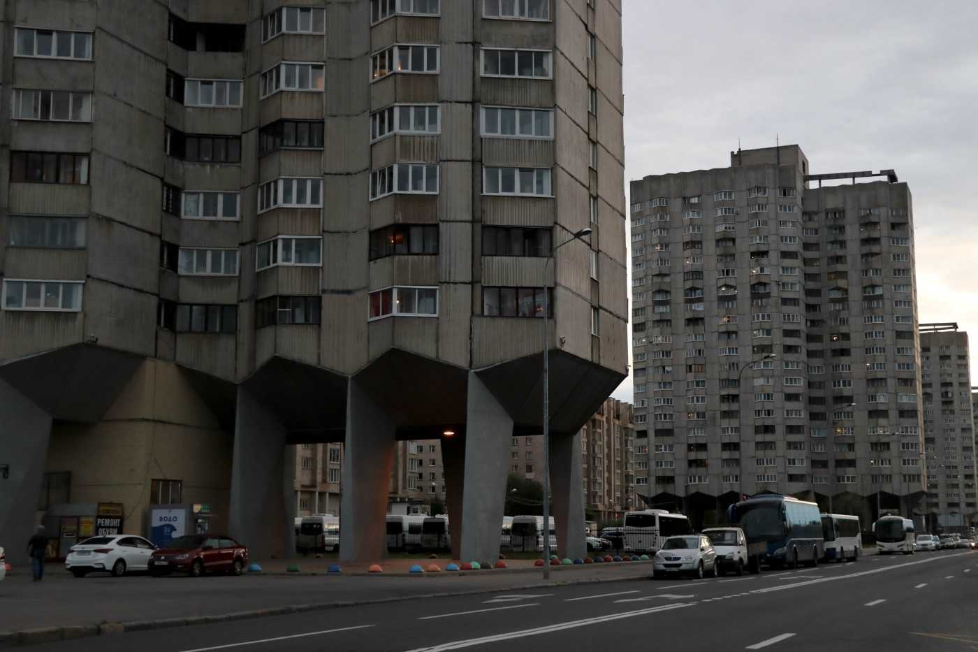 Один из самых известных примеров советского модернизма в Петербурге — это так называемые дома на ножках. Дома были построены в рамках типового проекта застройки Васильевского острова в середине XX века. «Ножки» — один из популярных модернистских элементов, полностью поставленные на них здания есть не только в Петербурге — другим примером является жилой дом на Беговой улице в Москве. Кроме того, эти 22-этажные стали одними из первых высоток города.