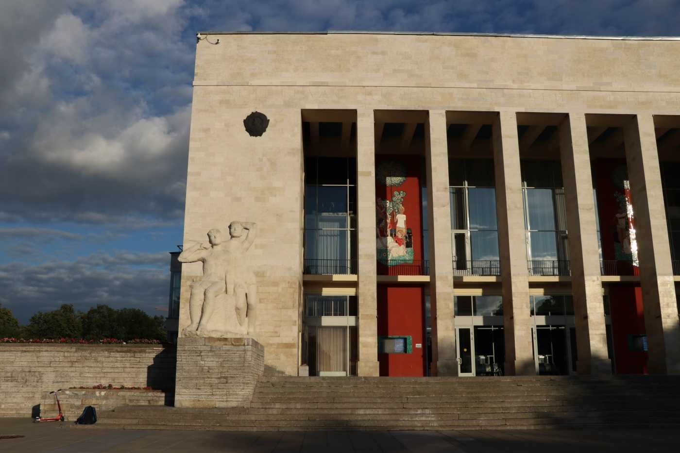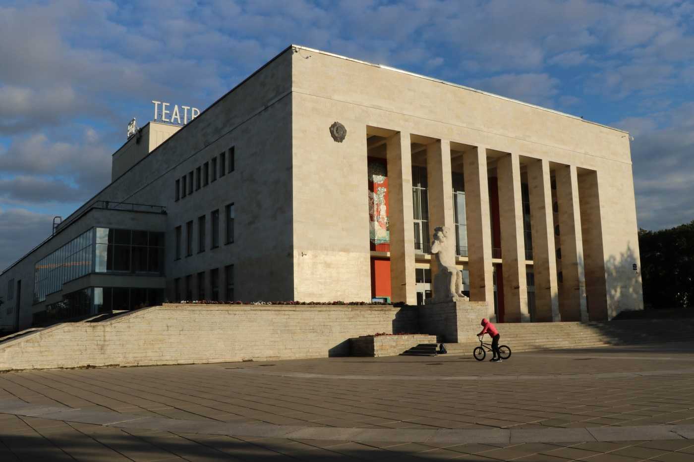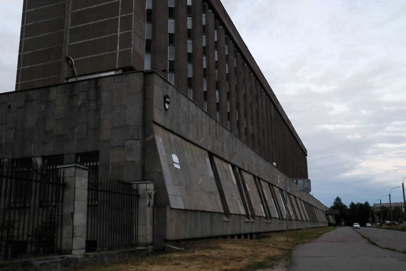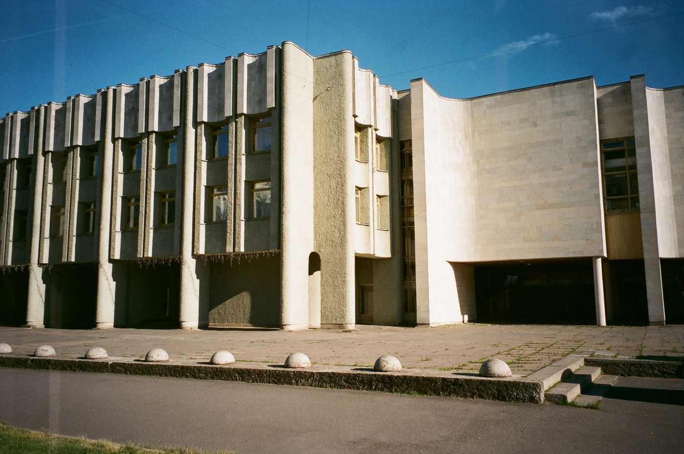Дом политпросвещения на Шпалерной улице имеет традиционную доломитовую облицовку и композиционно строится на сочетании строгих горизонтальных и вертикальных линий. Шпалерная продолжает район административных зданий, которые своими простыми и грубыми фасадами создают ощущение неприступности — может быть, поэтому этот квартал в основном безлюден.