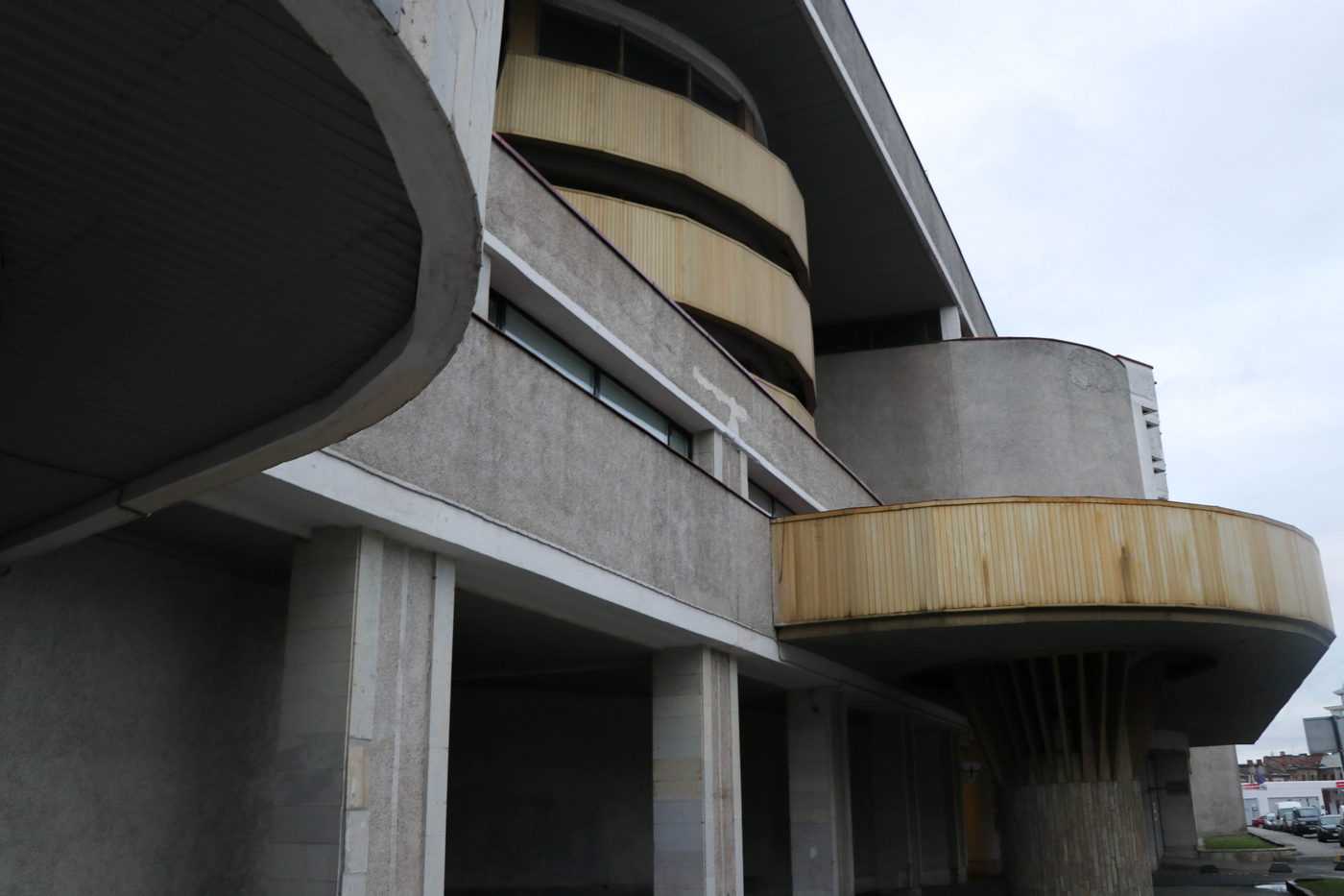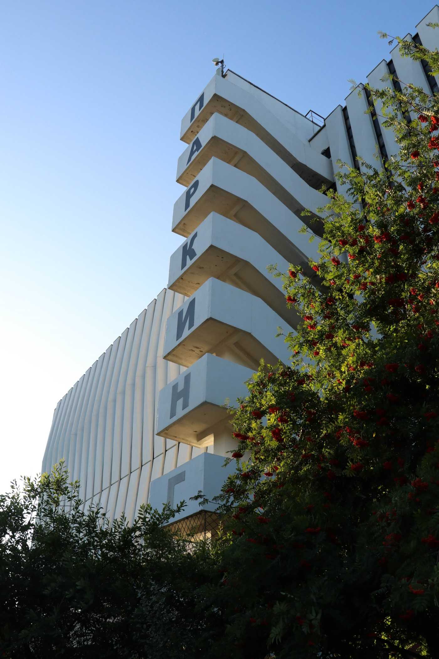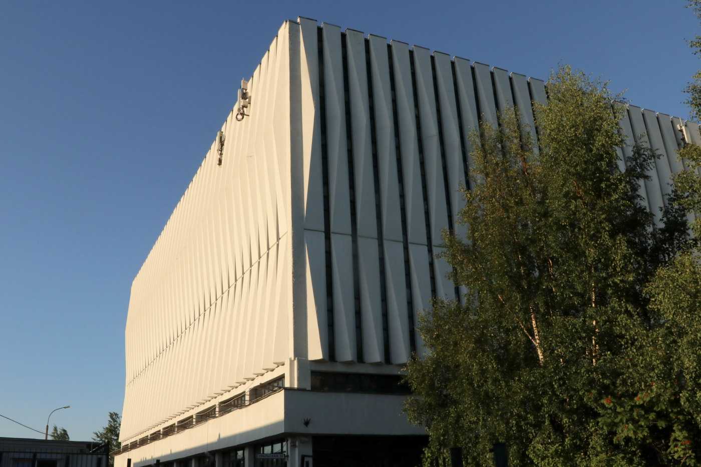 Здание автобазы строго функционально, при этом белый волнообразный фасад и сейчас смотрится стильно и современно.