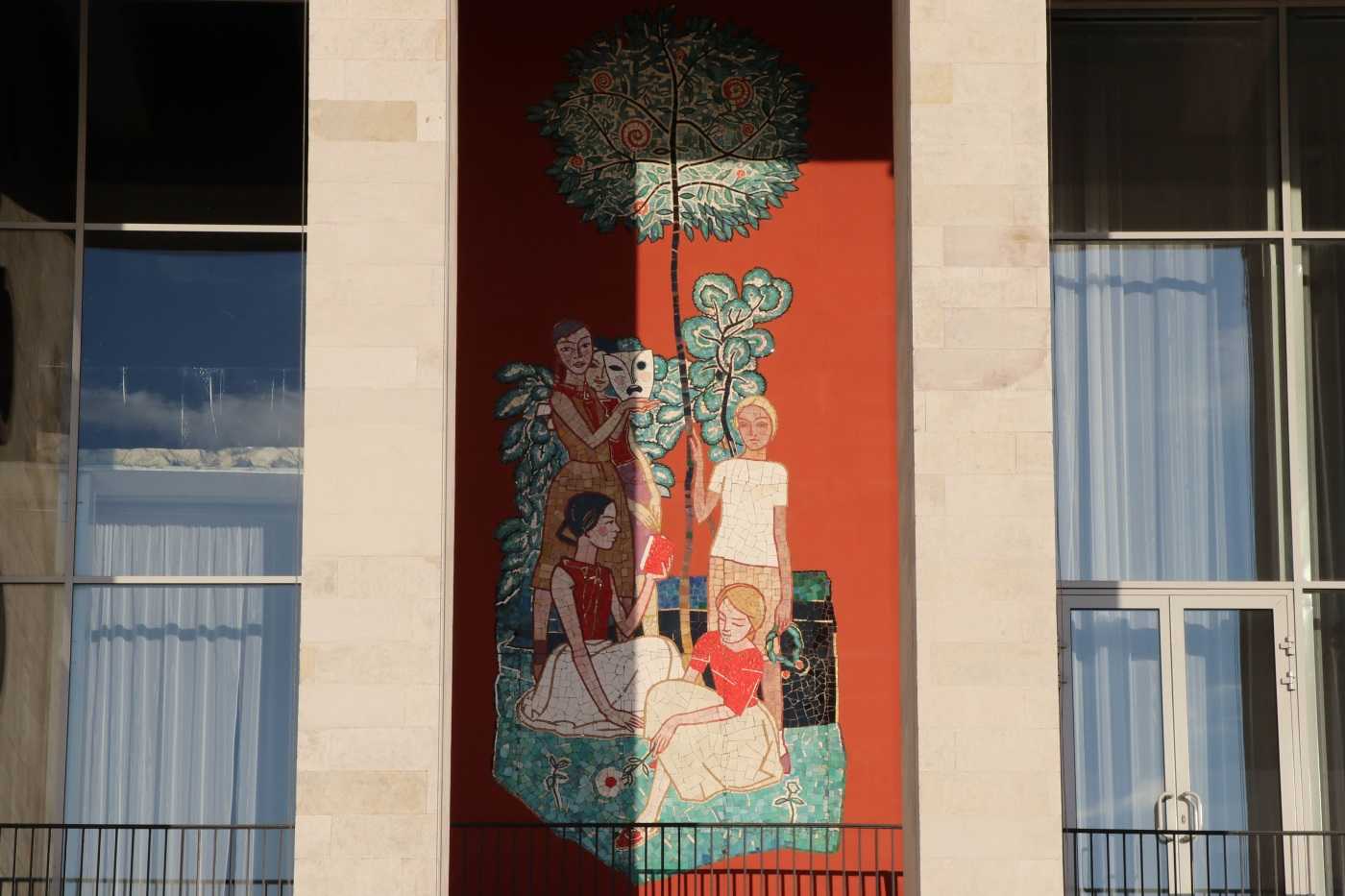 Здание ТЮЗа довольно просто и функционально, оно имеет цельный прямоугольный главный корпус, фасад которого украшают мозаики на сюжет дружбы народов. Симметрия и простота позволили театру довольно удачно вписаться в композицию Пионерской площади.