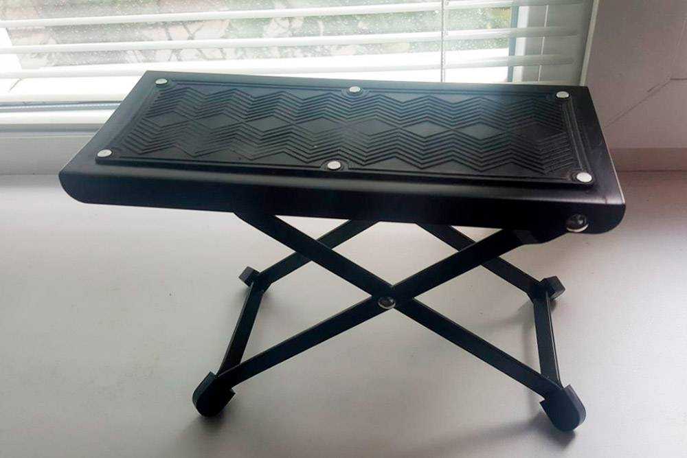 Подставка под ногу понадобится для игры на классической гитаре. Она мне обошлась в 700 Р. Благодаря резиновой поверхности нога не соскальзывает. При желании подставку можно сложить.