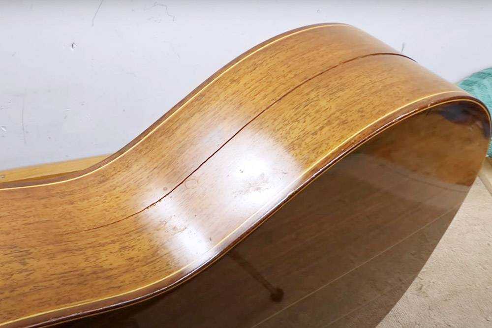 Трещина на обечайке из-за резкого перепада температуры. Лучше не покупать даже б/у гитару с таким дефектом