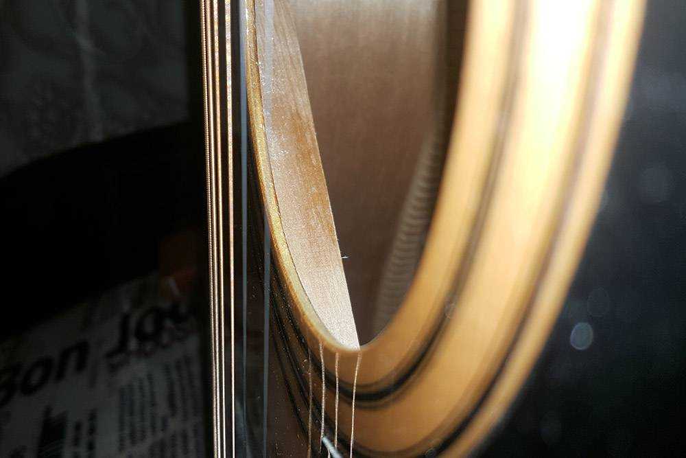 Торчащие лады. Если провести пальцами по верхней и нижней части грифа, не должны ощущаться выступающие лады. Бывает, что лады выступают и слегка царапают ладонь при игре. В целом такой дефект можно исправить шлифовкой у мастера, но закрывать глаза на него стоит только на дешевых гитарах — до 7000—9000 Р.