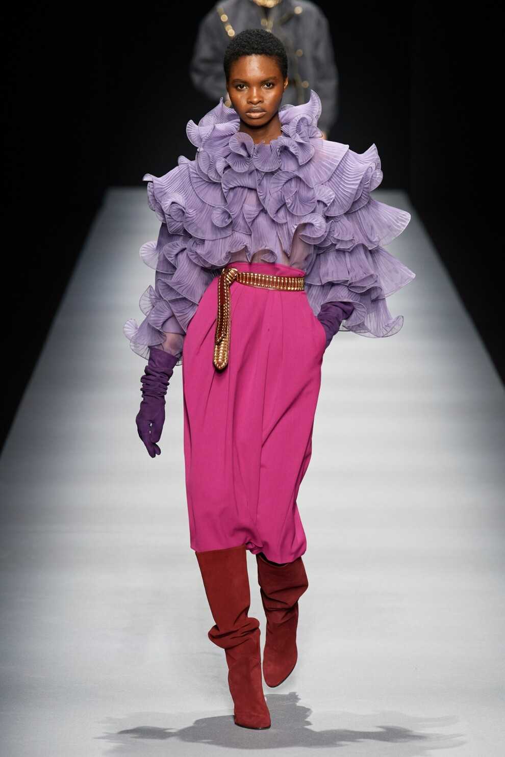 Комбинировать Very Peri с красным следует с осторожностью. Луки с такими сочетаниями смотрятся непривычно и экстравагантно