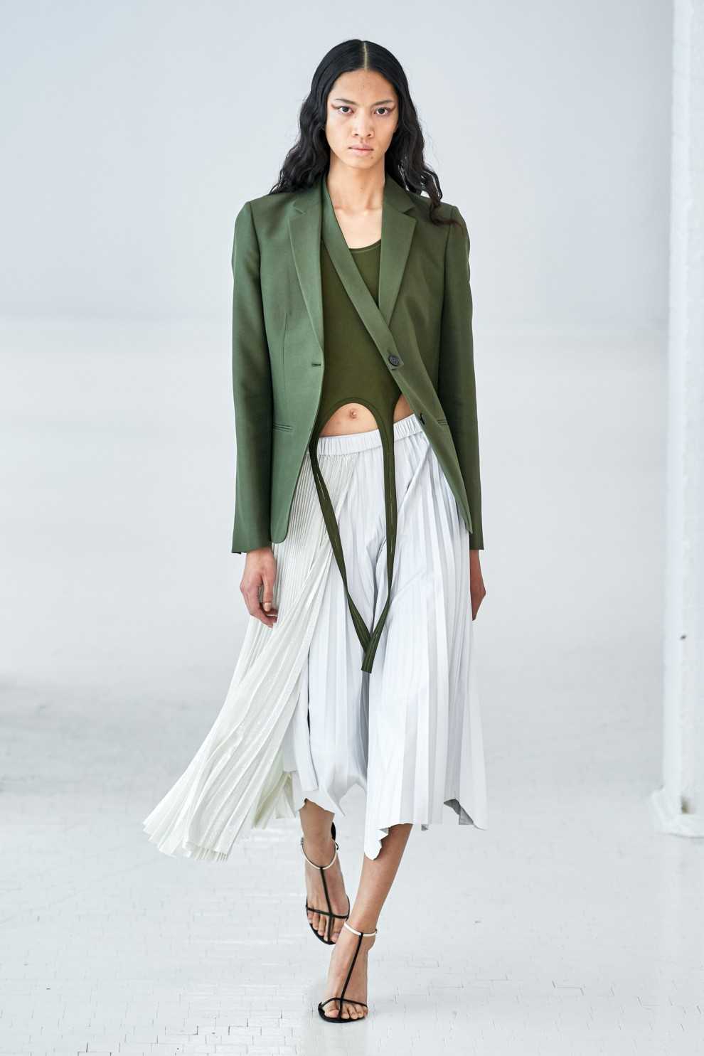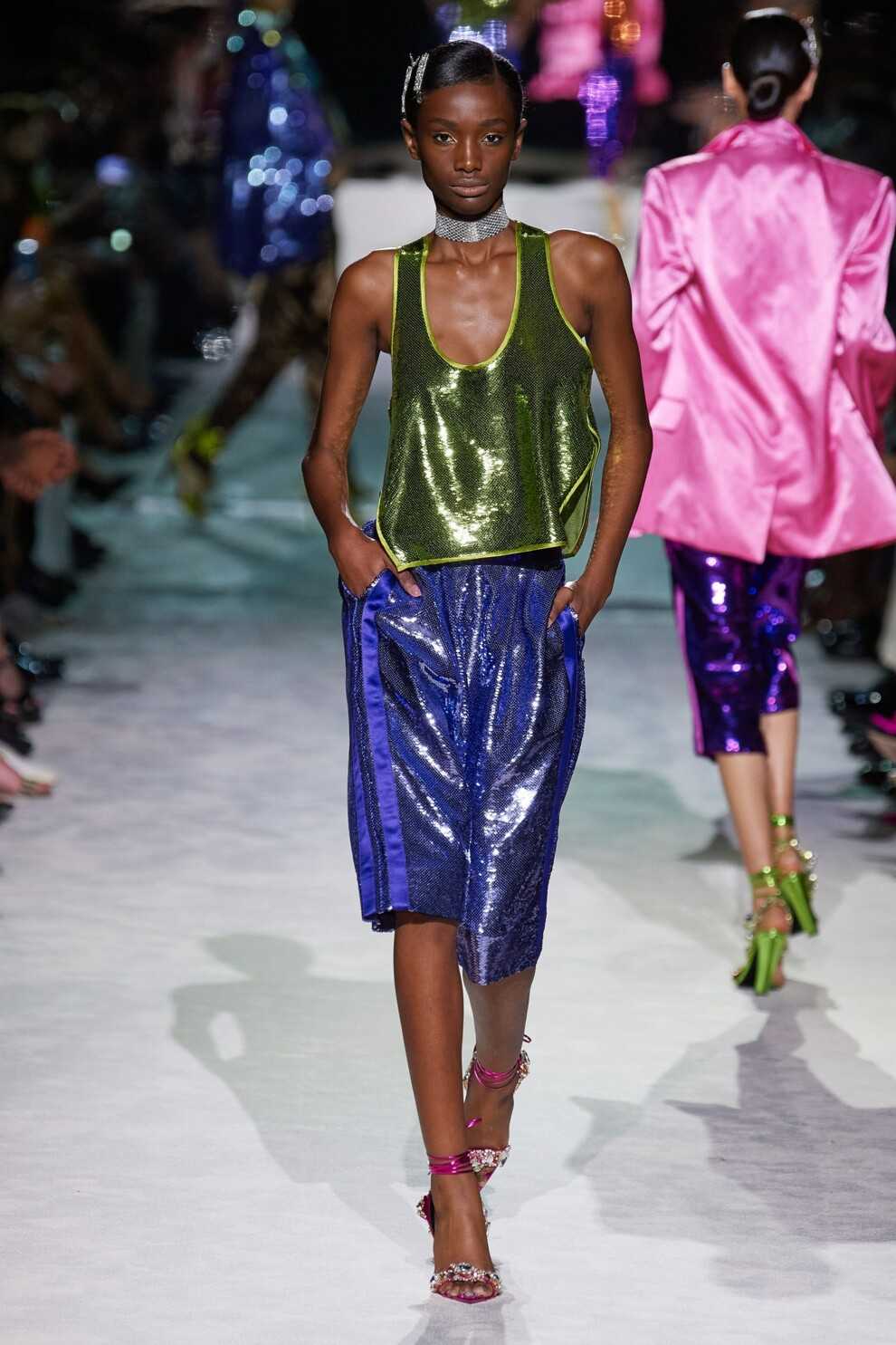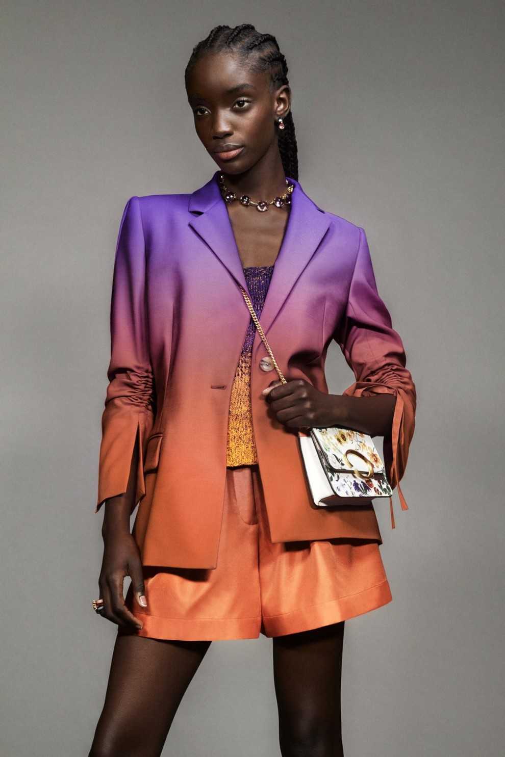 Зеленый сам по себе относится к успокаивающим цветам. Мятные, салатовые и шалфейные оттенки вместе с сине-фиолетовым наделяют аутфит творческими, элегантными и динамичными качествами.