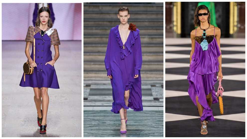 Этот запрет подходит для насыщенно-темного фиолетового, то есть табу, что и с фуксией. Образ выглядит нелепо и несбалансированно. Если есть желание использовать этот цвет, то лучше брать приглушенные и нежные оттенки, как в случае с розовым. К голубому подойдет, к примеру, светло-сиреневый.