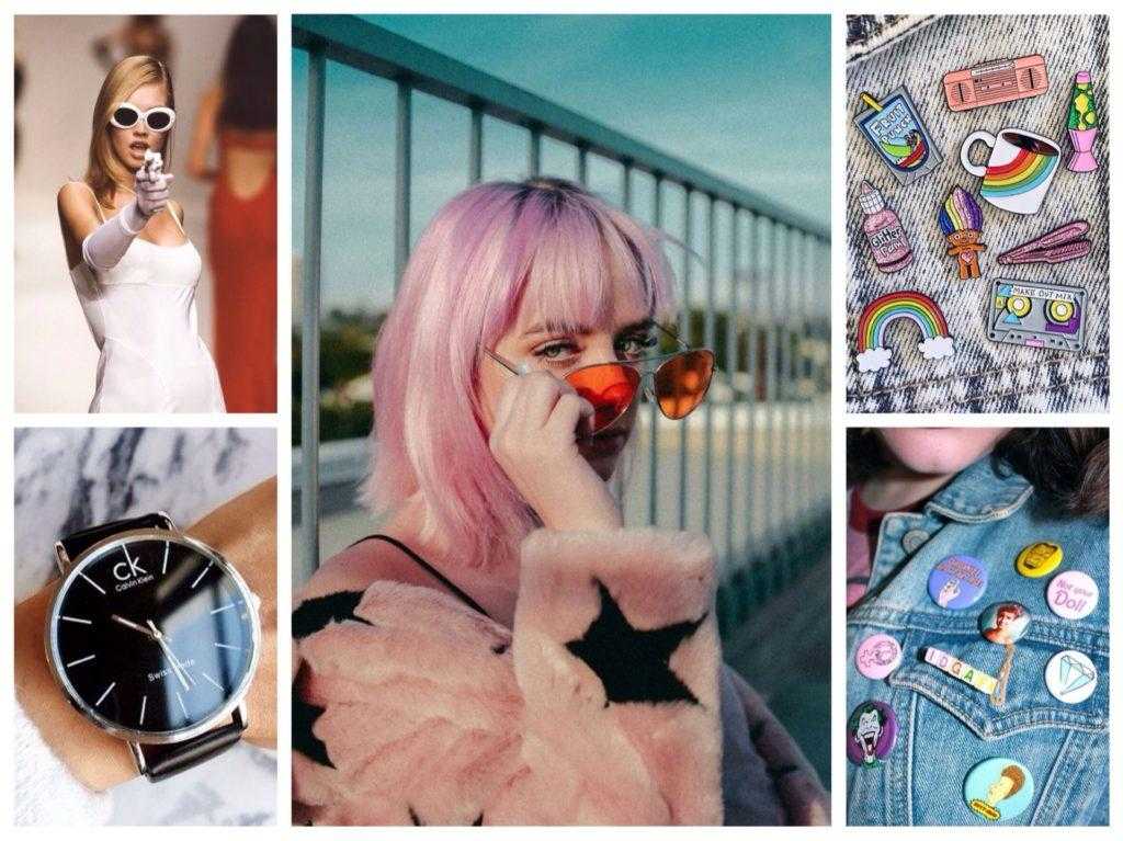 Хоть на первый взгляд стиль одежды и образ 1990-х кажется немного шокирующим, но всё же это яркий период нашей жизни. Наверняка у каждой в гардеробе найдутся джинсовые штаны, рубаха или свитер в стиле “оверсайз”. Аналог ярких лосин – цветастые леггинсы с удивительным принтом. Мини-юбки, яркие топы, джинсовые куртки, куртки с косо вшитой молнией — “косухи”, яркая пластмассовая бижутерия, цветные резинки и незабываемые клипсы.