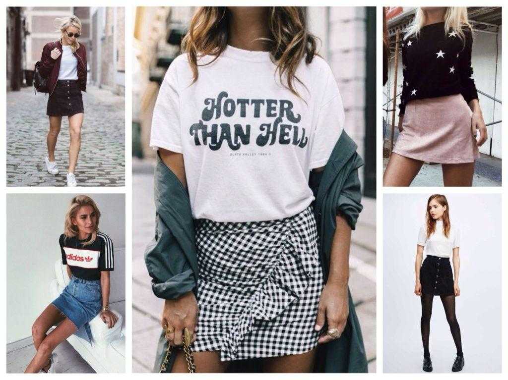 - Модным было сочетание кожаной или джинсовой юбки трапеции с водолазкой, футболкой или объемным свитером. Если позволяла фигура, то такую юбку можно надевать в паре с укороченным топом.