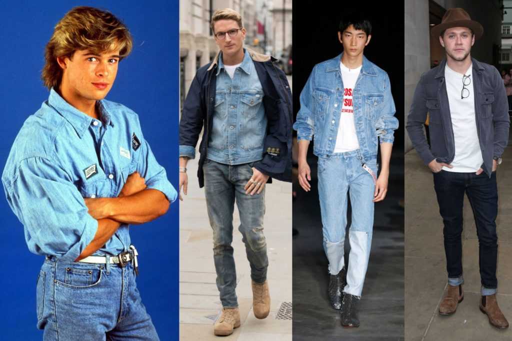 - джинса — предполагалось, что джинсовые вещи должны стать основой мужского гардероба. Это были всевозможные куртки, джинсовые штаны (прямые или трубы, никаких скинни!), шорты, жилетки, кепки и даже плащи;