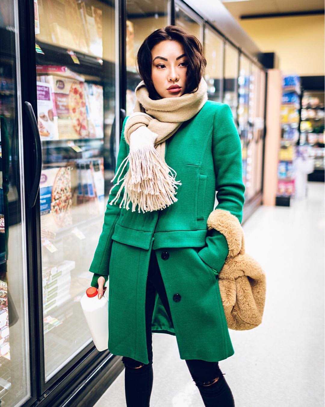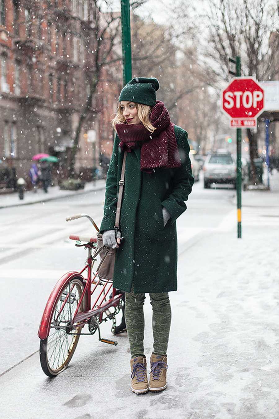 Зеленые пальто, куртки и пуховики будут интересно смотреться в сочетании с контрасным или подходящим по тону аксессуаром, к примеру, шарфом. Не стоит все же перегружать образ дополнительными цветами — они могут смотреться неуместно. Удачным вариантом будет, если в комплекте с цветной курткой и шарфом прочие вещи останутся нейтральных, базовых или однотонных цветов.