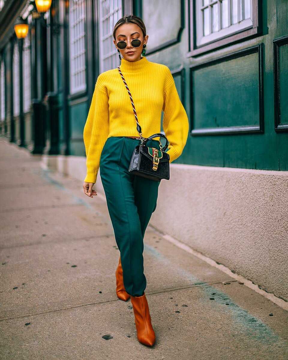 Другие популярные блогеры тоже отметились в нарядах вызывающего оттенка, но использовали его немного сдержаннее, акцентируя внимание на отдельных деталях: сумочках, ярких сапожках, водолазках