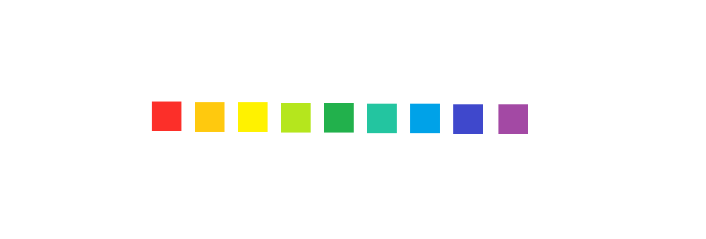 – розовый; – коралловый; – светло-зеленый, салатовый; – желтый, оранжевый; – голубой; – сине-фиолетовый; – темный фиолетовый. |
