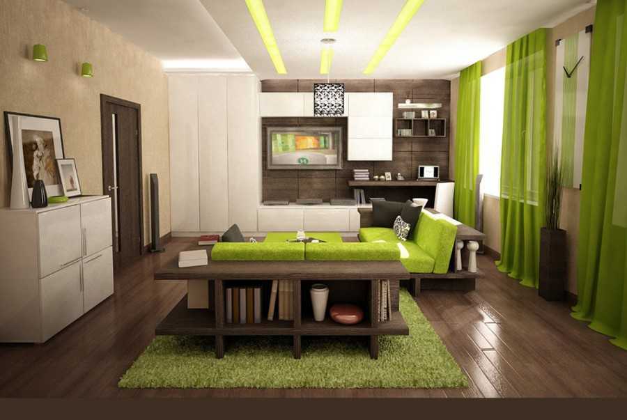 Для гостиной зеленый цвет можно включить в интерьер с помощью мебели или декоративных аксессуаров. Рекомендуется посмотреть фото интерьера в зеленых цветах для выбора подходящего дизайна.