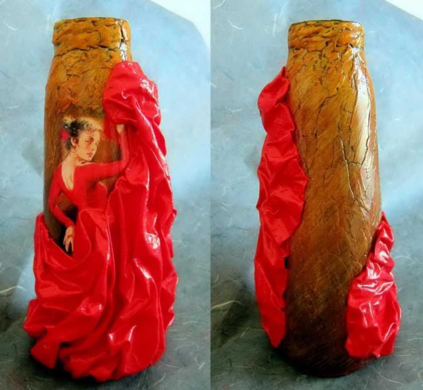Декупаж бутылок — пошаговая инструкция и описание хода работ по украшению различными материалами (110 фото)