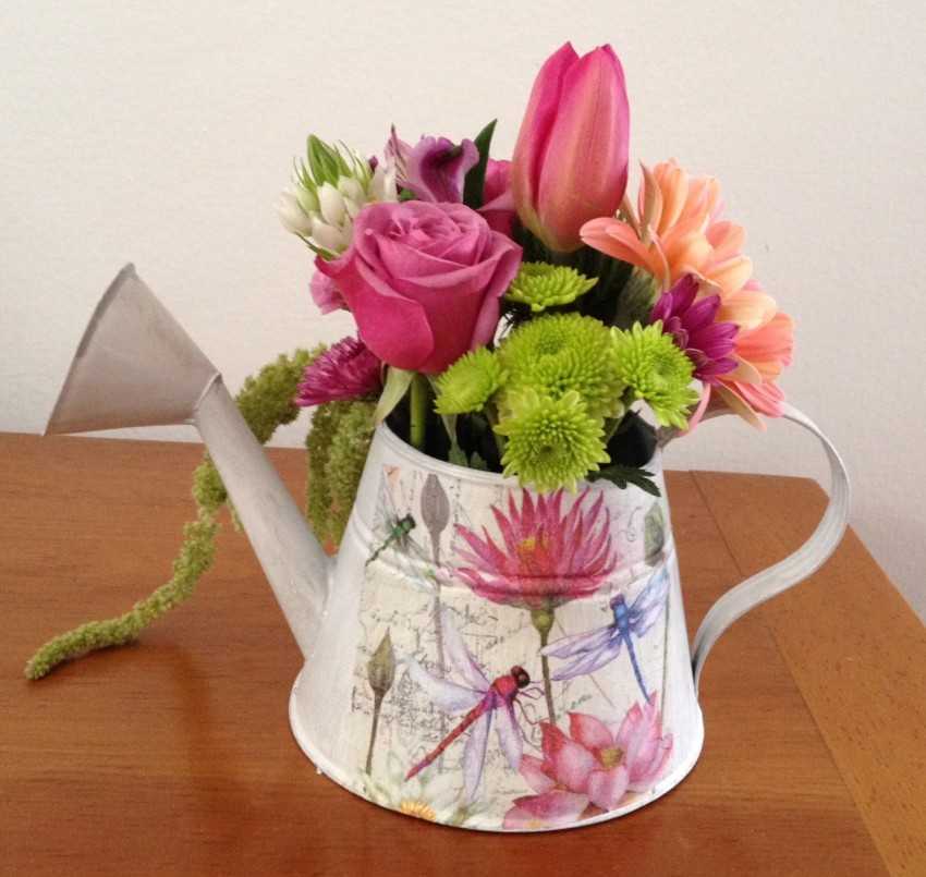 Весенние цветы будут прекрасно смотреться даже в тех емкостях, которые предназначены совершенно для других целей.