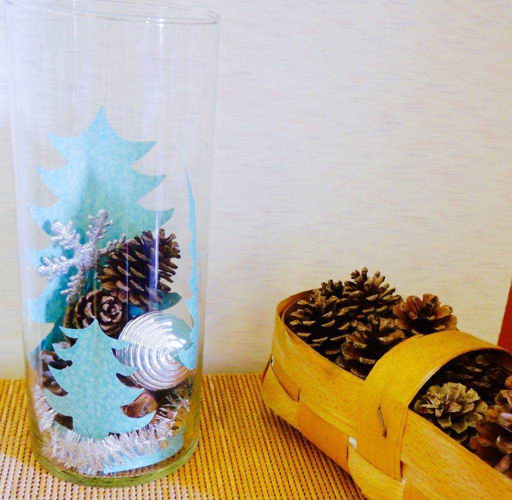 Самый простой способ украсить однотонную вазу своими руками — наклеить трафарет, наклейку или во внутрь вырезку из бумаги с любым наполнителем. Особенно эффектно они будут смотреться на прозрачных вазах. Дополнительно можно разрисовать поверхность акриловыми красками оттенка металлик.