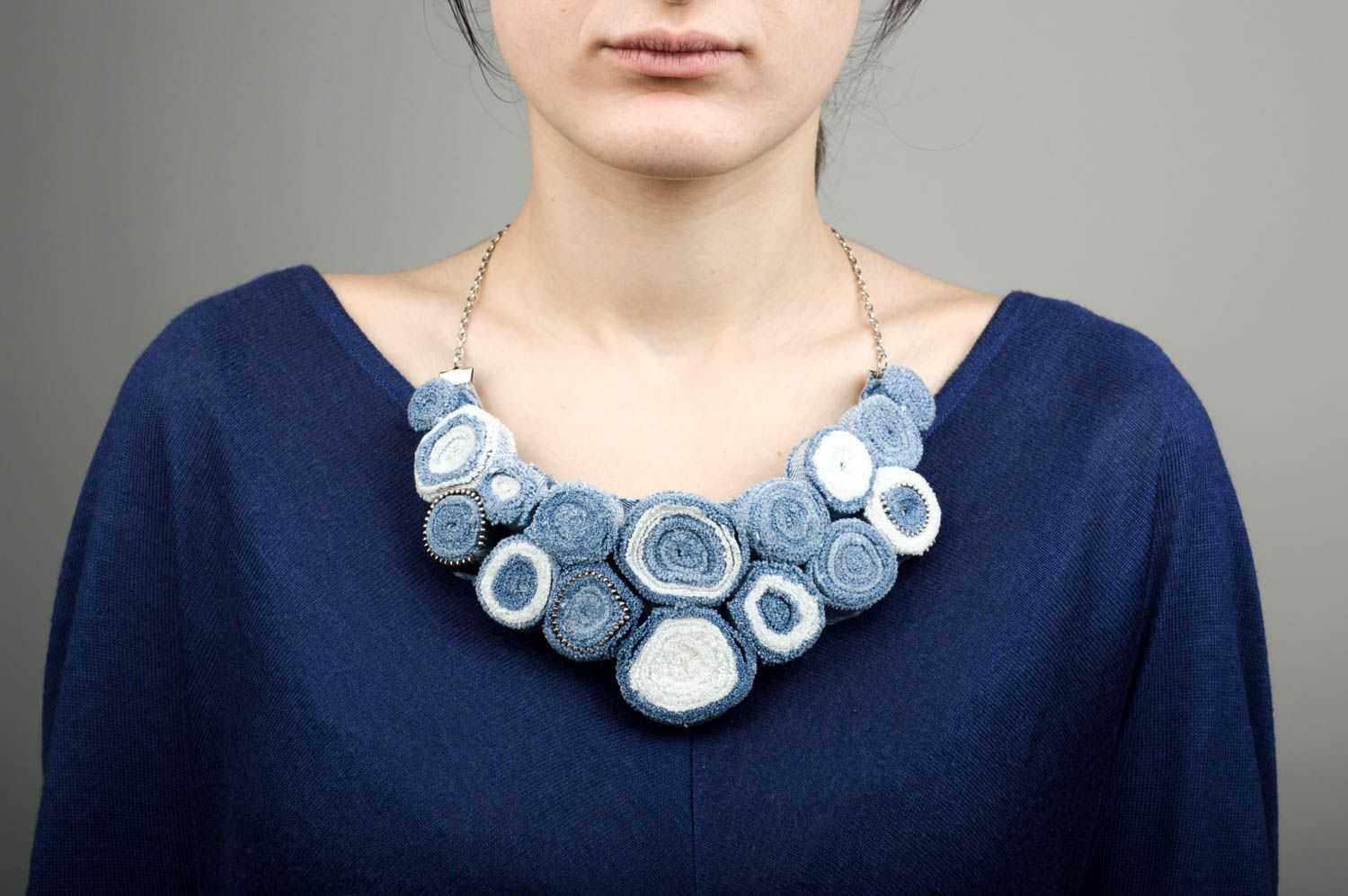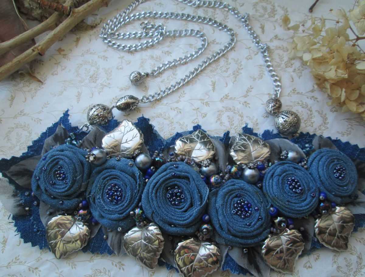 С джинсовой тканью сочетаются любые материалы. Особенно нежно и необычайно женственно выглядят украшения из джинсовой ткани и кружев, атласных лент или фатина. Необычное сочетание фактур, контрастная отделка, вышивка и вязаные элементы, пуговицы и бусины — все это можно смело использовать при изготовлении оригинальной бижутерии из джинсовой ткани. Творите и удивляйте мир модными аксессуарами handmade, с удовольствием хвастайтесь успехами, делитесь идеями с новичками.