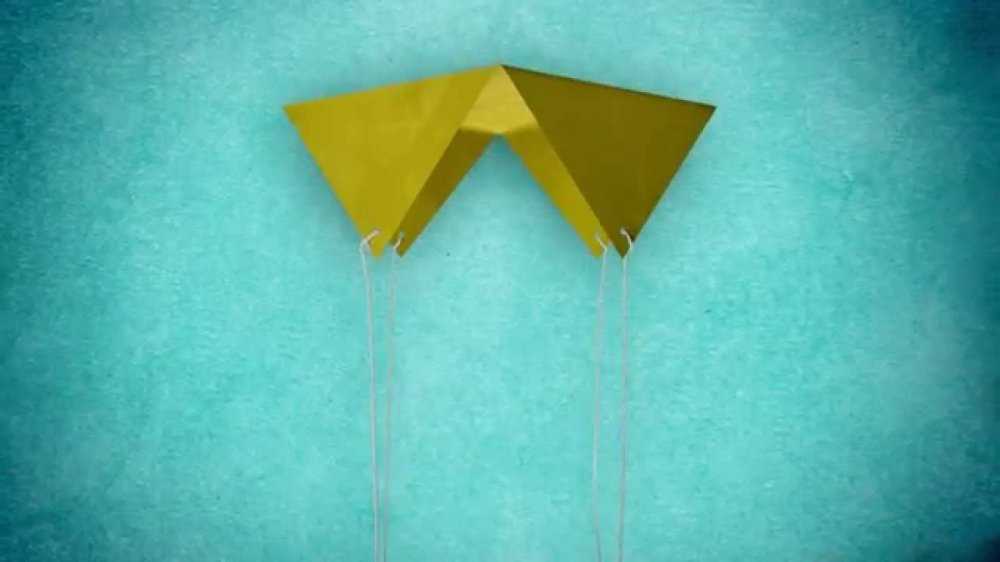 8)У нас уже готова основа для бумеранга, осталось сделать скосы на его концах. Нужно втолкнуть концы вовнутрь, сделать кармашек и заправить туда излишки бумаги.
