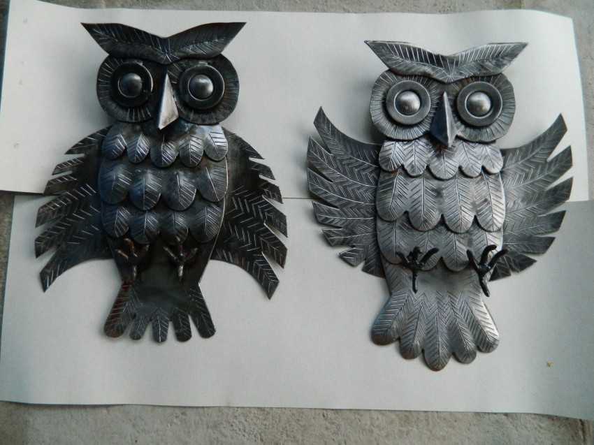 Для работы с тонким листом металла достаточно крепких и острых ножниц. Благодаря им создаются красивые поделки из металла в виде фигурок животных, различных узоров либо абстракции. Что необходимо для изготовления металлической совы: