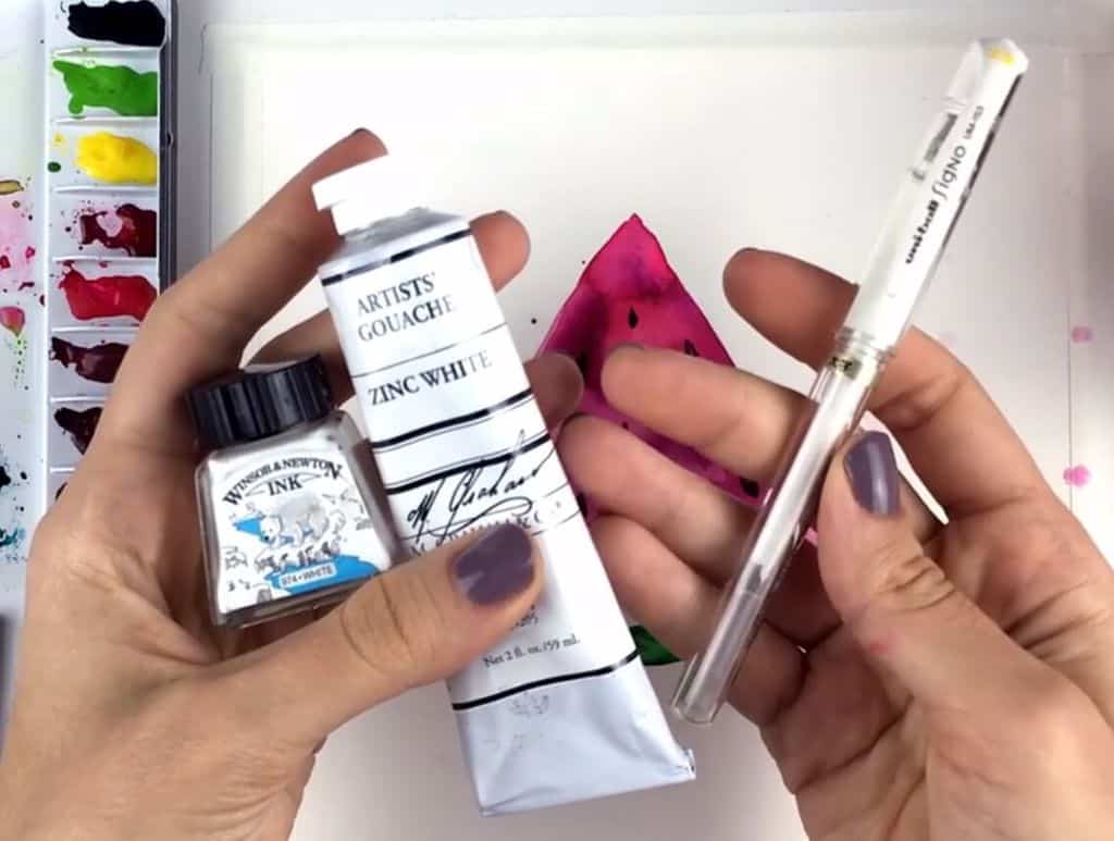 После нужно добавить блики. Для этого вы можете использовать белые чернила, белую гуашь или гелиевую ручку.