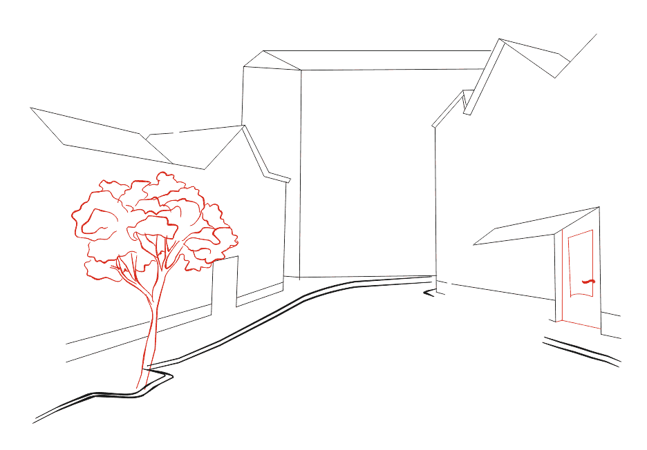 5 этап Что за город без деревьев? По левую сторону дороги изображаем небольшое деревцо. Если вы не умеете рисовать деревья, то можете почитать об этом нашу статью. В правом доме вставляем дверь