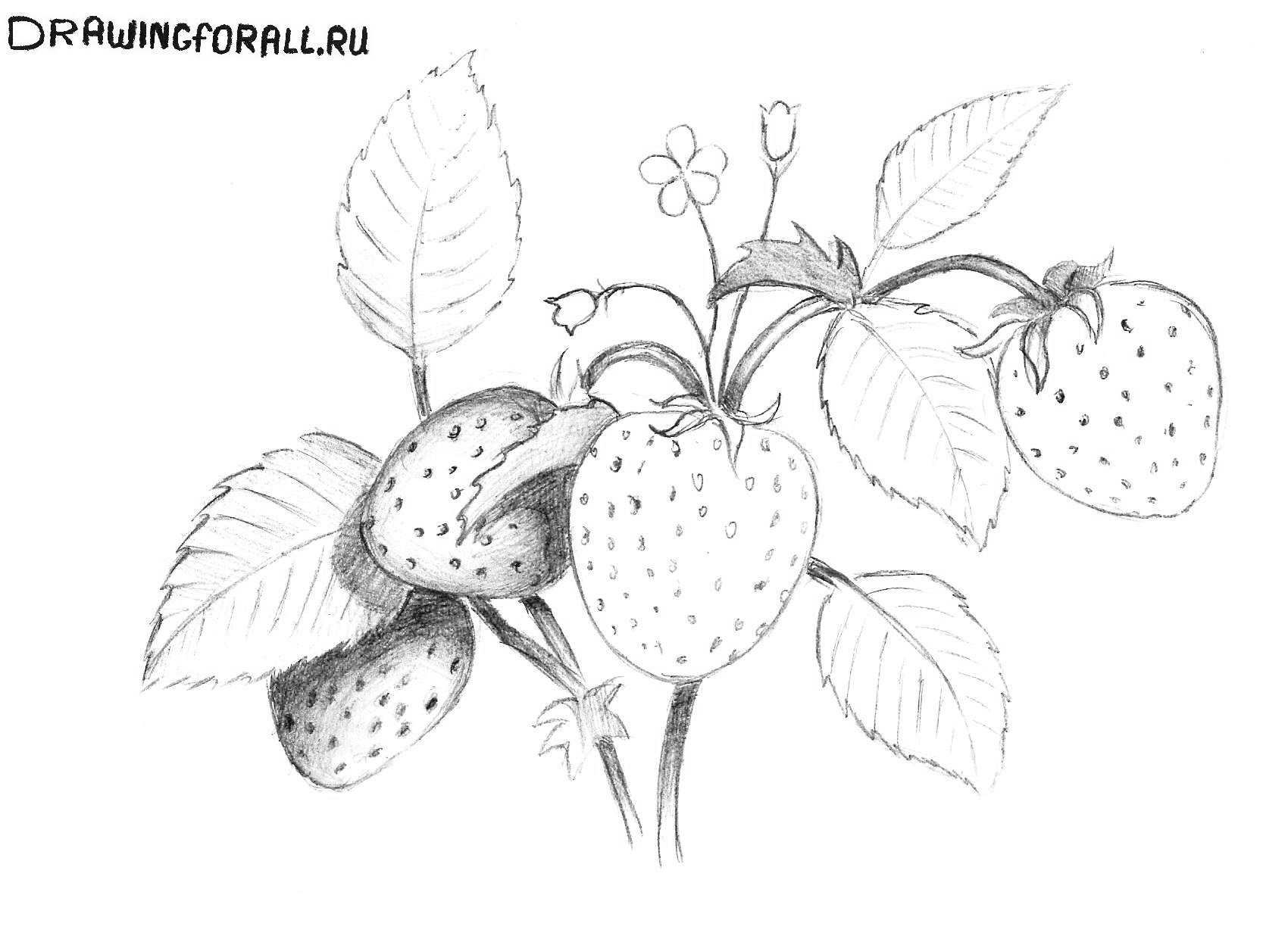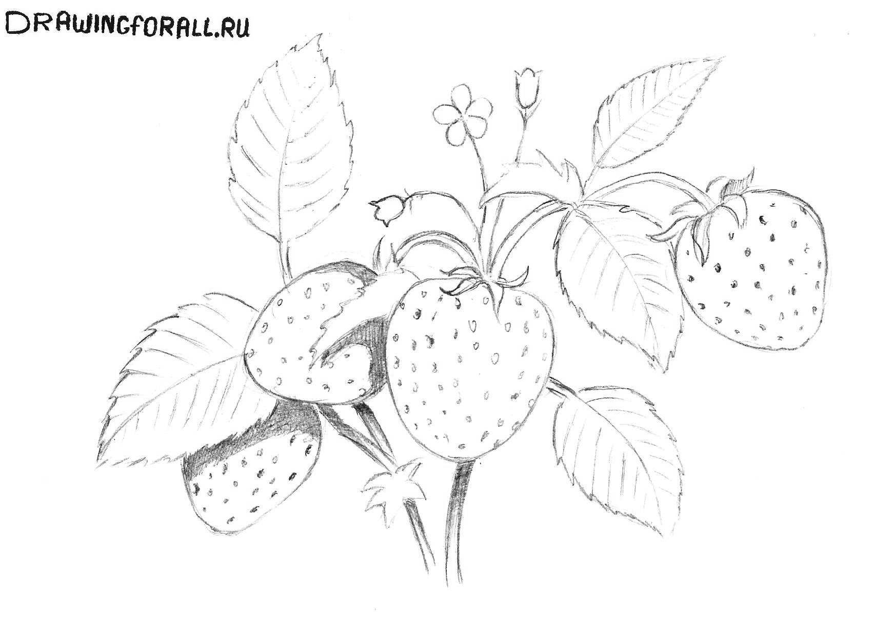 Как нарисовать клубнику простым карандашом поэтапно