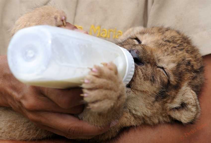 Маленькие львята рождаются весом до 2 кг, и они абсолютно беспомощные. Малыши начинают ползать на 2-3 день после рождения, видеть — только через неделю, ходить – через три недели.