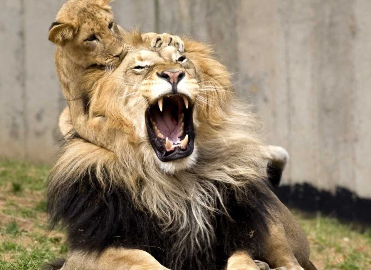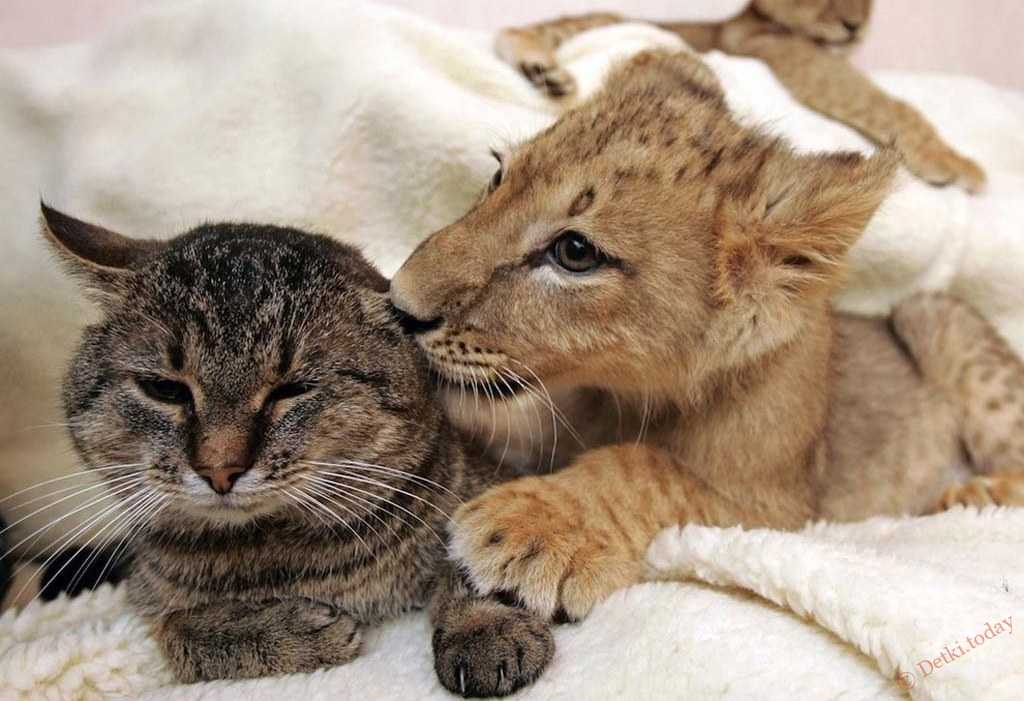 Король африканской саванны имеет примечательную отличительную черту – гриву. Причем есть она только у самцов. А прикольные маленькие львята рождаются с пятнышками на теле. Не удивительно, ведь львы, тигры, ягуары и леопарды – это родные братья.