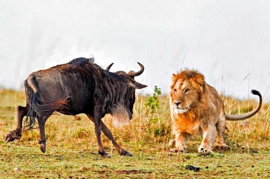 Оставшиеся 4 часа король Африки посвящает охоте, прогулкам и приему пищи. Кстати, он может охотиться днем и ночь. Фото с охотящимся или поедающим свою добычу львом – это не та категория, которую устанавливают как обои на рабочий стол, они слишком кровожадны. Но даже на них хищник красиво и мощно.