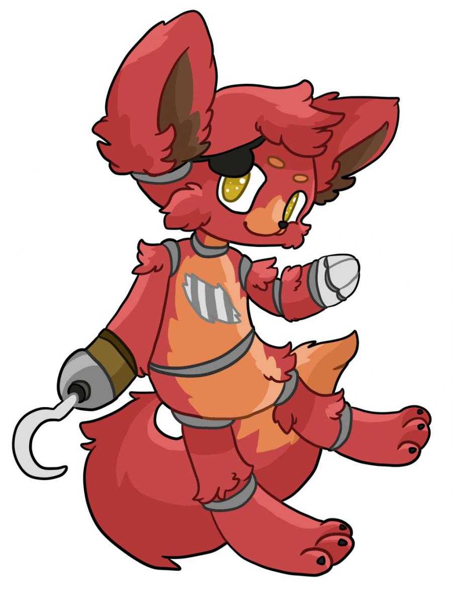 Лис-аниматроник. Скорее всего, в пиццерии исполнял роль пирата, так как на его функционирующем правом глазу повязана черная декоративная пиратская повязка, на кисти правой руки – крюк, а обитает он в локации «Пиратская бухта» за занавеской с надписью «Примете извинения – вышел из строя». В музыкальной группе Фредди не состоит, так как списан из-за потрепанного внешнего вида. Сейчас его когда-то красная шкурка вся в дырах и заплатах, из-под которых торчит эндоскелет. В особенности истрепались ноги Фокси: под обносками льняных штанов четко проглядывается металлический остов.
