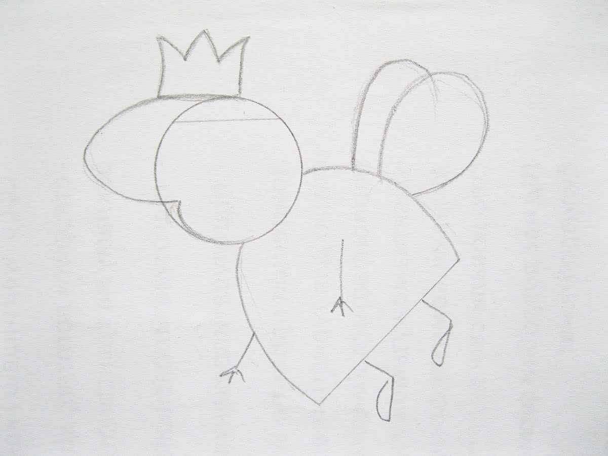 На первых этапах рисования, части тела мы рисуем схематически, с помощью геометрических фигур. Поэтому, время о времени нужно стирать ластиком ненужные линии.