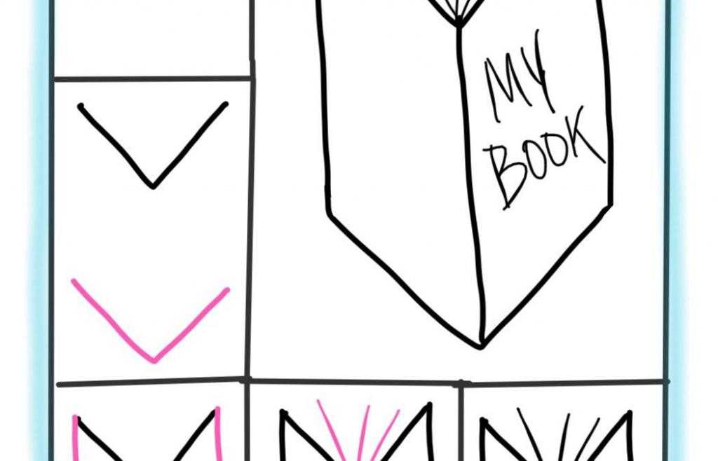 - Начните с эскиза. На листе бумаги нарисуйте границы книги, чтобы определить масштаб рисунка и местоположение объектов на страницах.