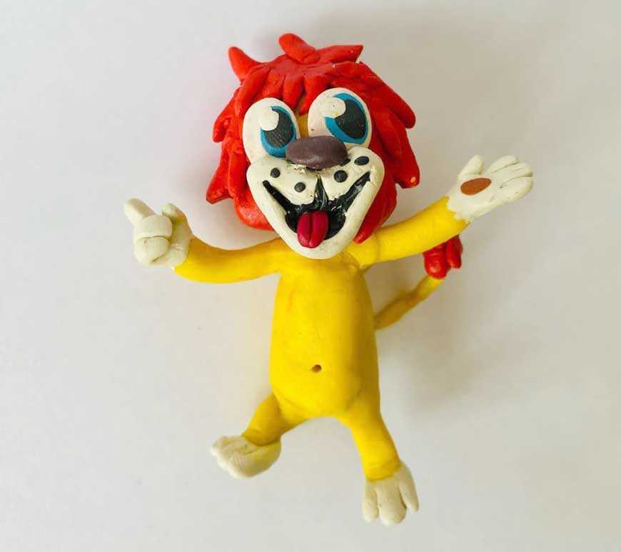 - Как и в случае с Хаги Ваги, нужно использовать желтый пластилин для того, чтобы сделать ступни и кисти. Надрезайте на них стекой пальчики. Прикрепите ко всем четырем конечностям эти желтые детали.