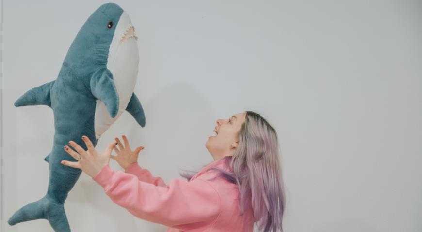 Настоящее имя акулы из магазина IKEA — Blåhaj (Блохэй). Пользователи социальных сетей любят делать с ней смешные фотографии, и этот тренд не ослабевает.