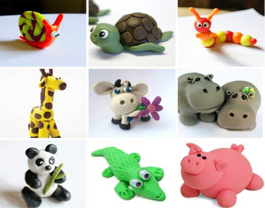 Чтобы вам было легче визуализировать процесс, рассмотрите подготовленные для вас фото некоторых фигурок, которые можно легко слепить из пластилина с детьми. Здесь вы можете увидеть милых животных, вкусную еду, и многое другое.