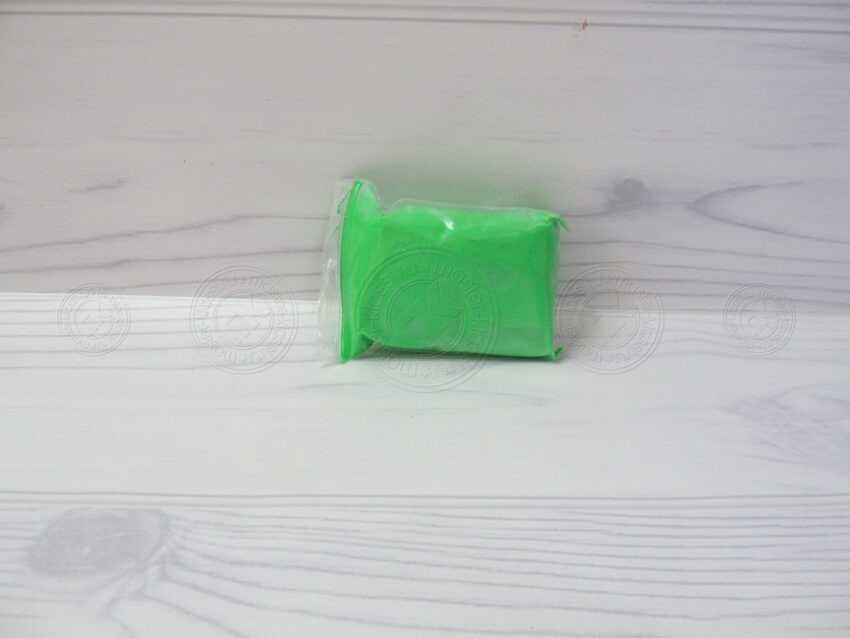 1. Достаньте из коробки зеленый пластилин и подготовьте рабочую поверхность для работы. Не обязательно брать много материала, если вы переживаете, что вам может не хватить. Размер поделки может быть и небольшим.