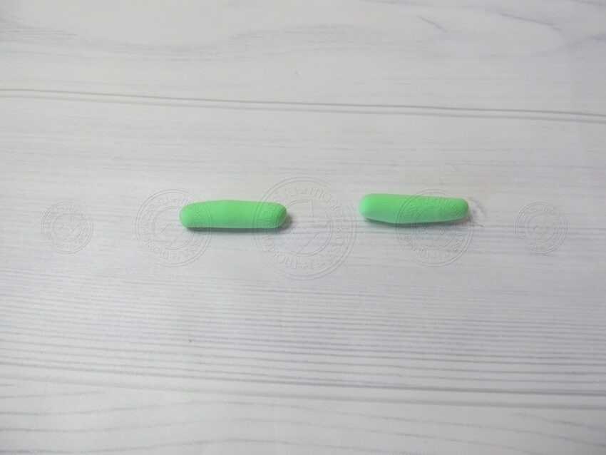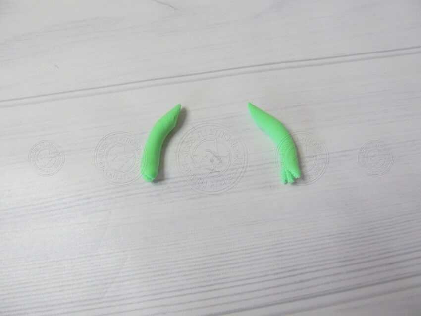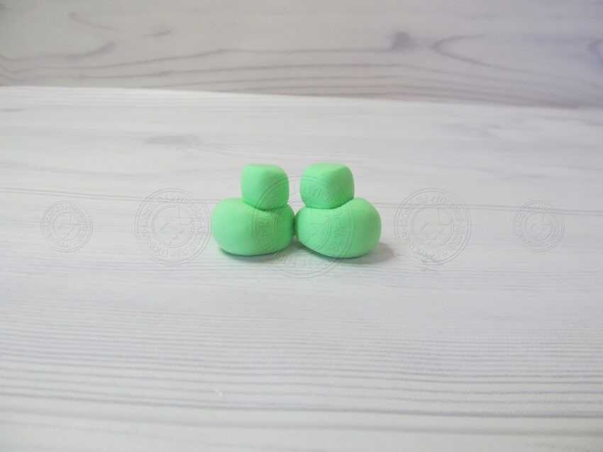 8. Из салатового цвета формируем две колбаски, как это показано на нашей фотографии.