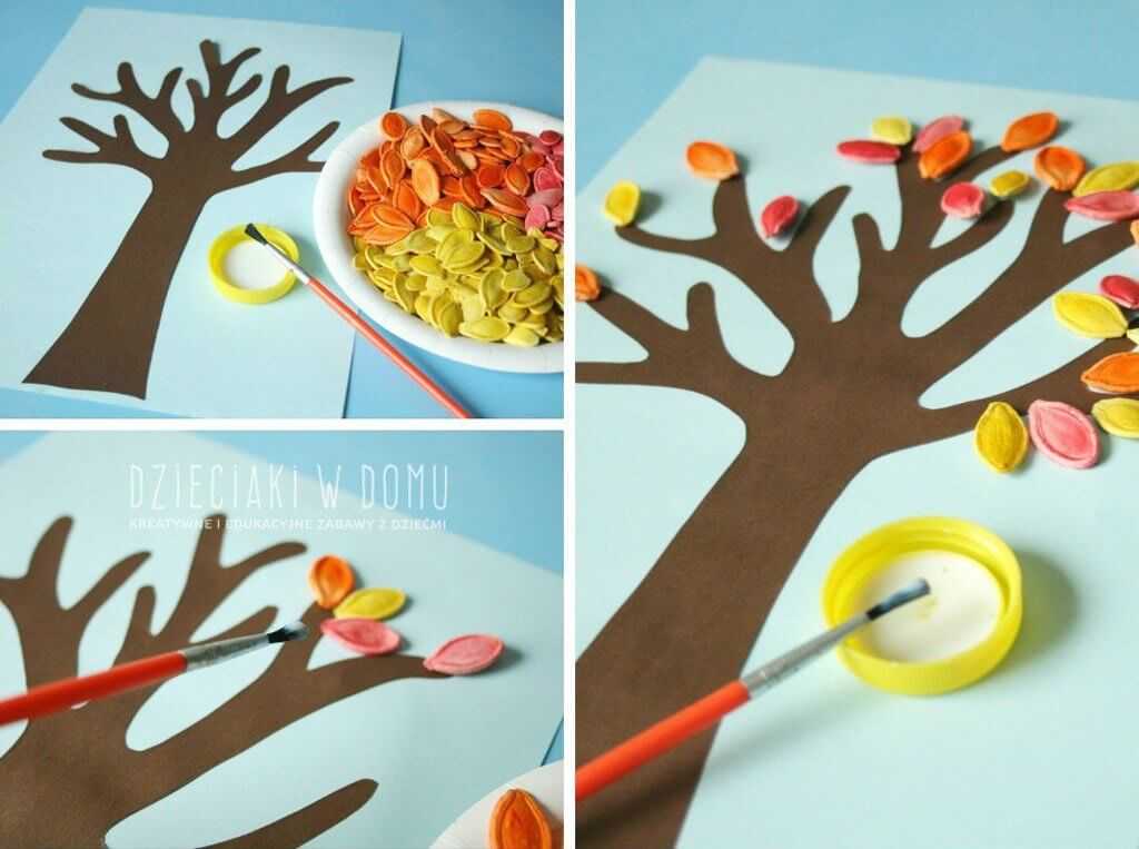 Семена можно прокрасить акварелью или гуашью и просушить. Тогда ребенку будет очень интересно создавать аппликации.
