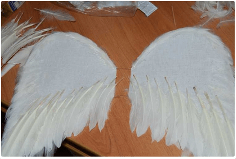 Самым интересным вариантом, несмотря на многочисленные идеи, остаются перьевые крылья из натурального пуха. Такое изделие смотрится гармонично на ангеле любого возраста и комплекции. Чтобы соорудить изделие, нужно посетить магазин для творчества и приобрести там необходимые материалы.