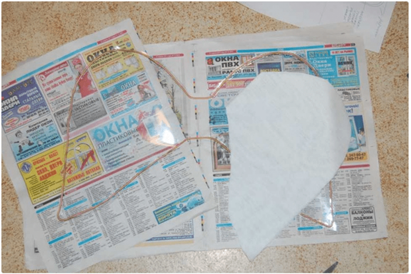 - Традиционно сначала необходимо придумать форму крыльев. Как только вы определитесь, сразу же формируйте соответствующий каркас из медной проволоки. Учитывайте, что его размер обязательно должен быть меньше готовых крыльев, чтобы проволоки не было по итогу видно.