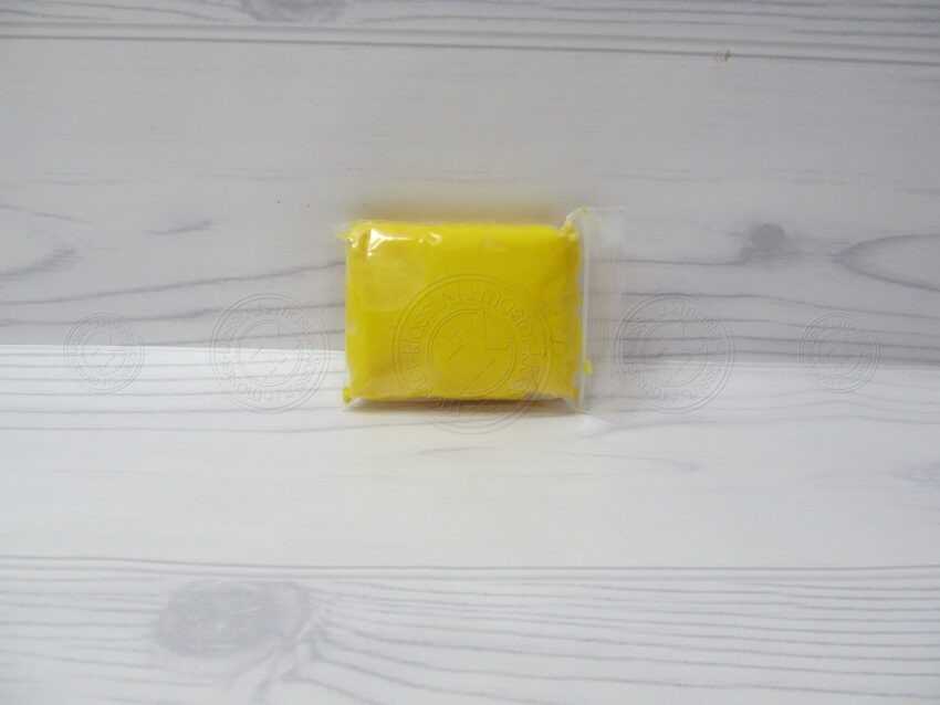 1. Положите перед собой желтый пластилин, достав его из коробки. Так как мы используем базовые цвета, то сгодится даже школьный набор, в котором должен быть инструмент. Он нам впоследствии пригодится, чтобы формировать некоторые детали.