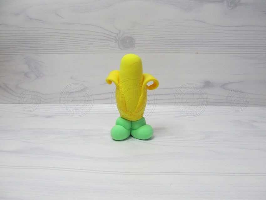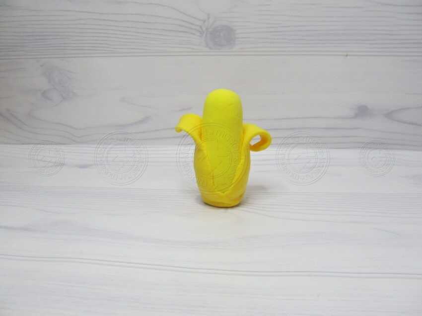 3. Как вы можете заметить, изготовление базовых фигур служит основой для последующих действий. Это избавляет нас от необходимости лишний раз поправлять конструкцию, делая ее ровной. На данном этапе нам необходимо из шара получить форму банана. Сделайте это достаточно условно, как показано на нашей фотографии.