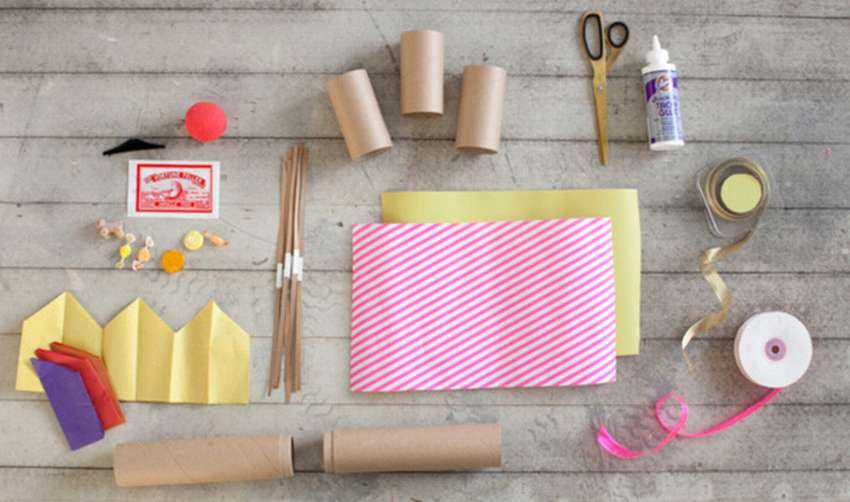 Необходимые материалы: Маленькие призы, бумажные короны, картонные трубочки, упаковочная бумага, ножницы, клей и ленты.
